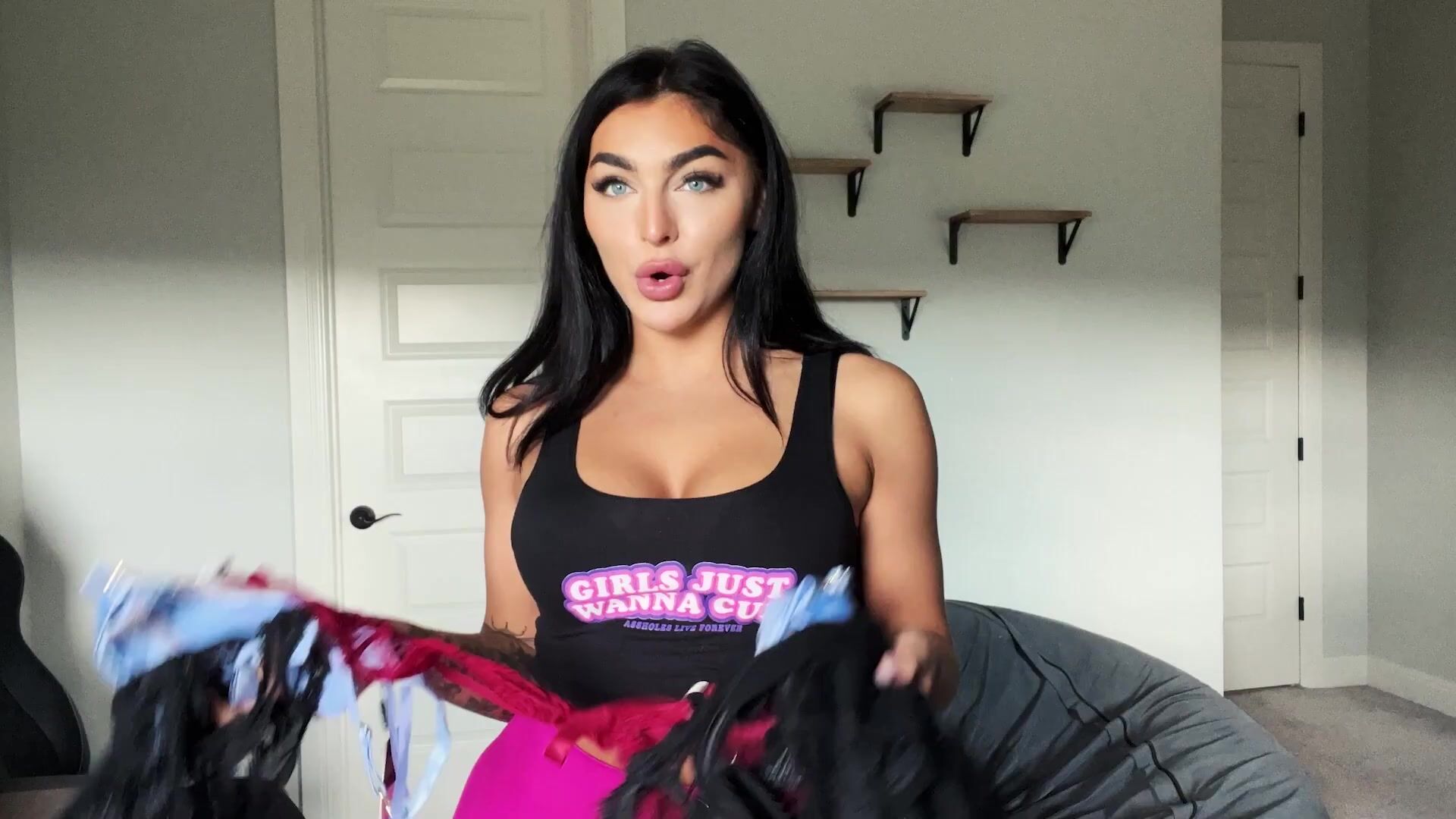 Emily Rinaudo Teasing Her Thick Ass During Sexy Lingerie Try On Haul Video