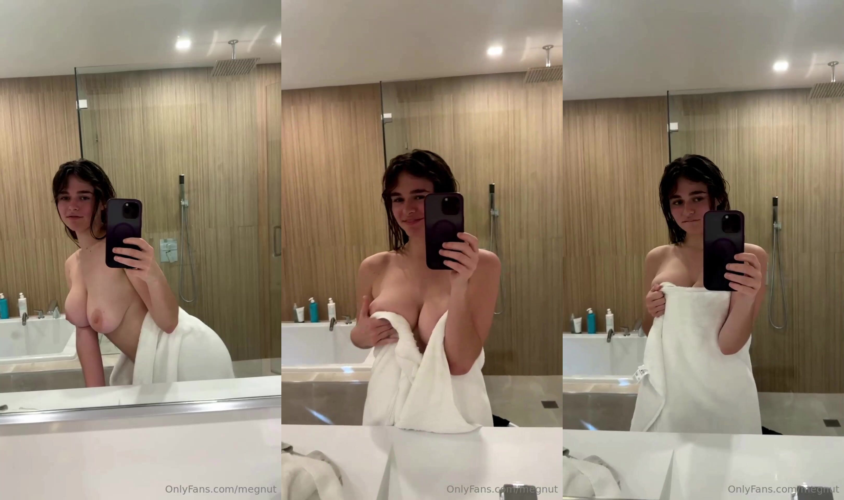Megnut Bath after shower bouncing tits and booty wearing a towel.