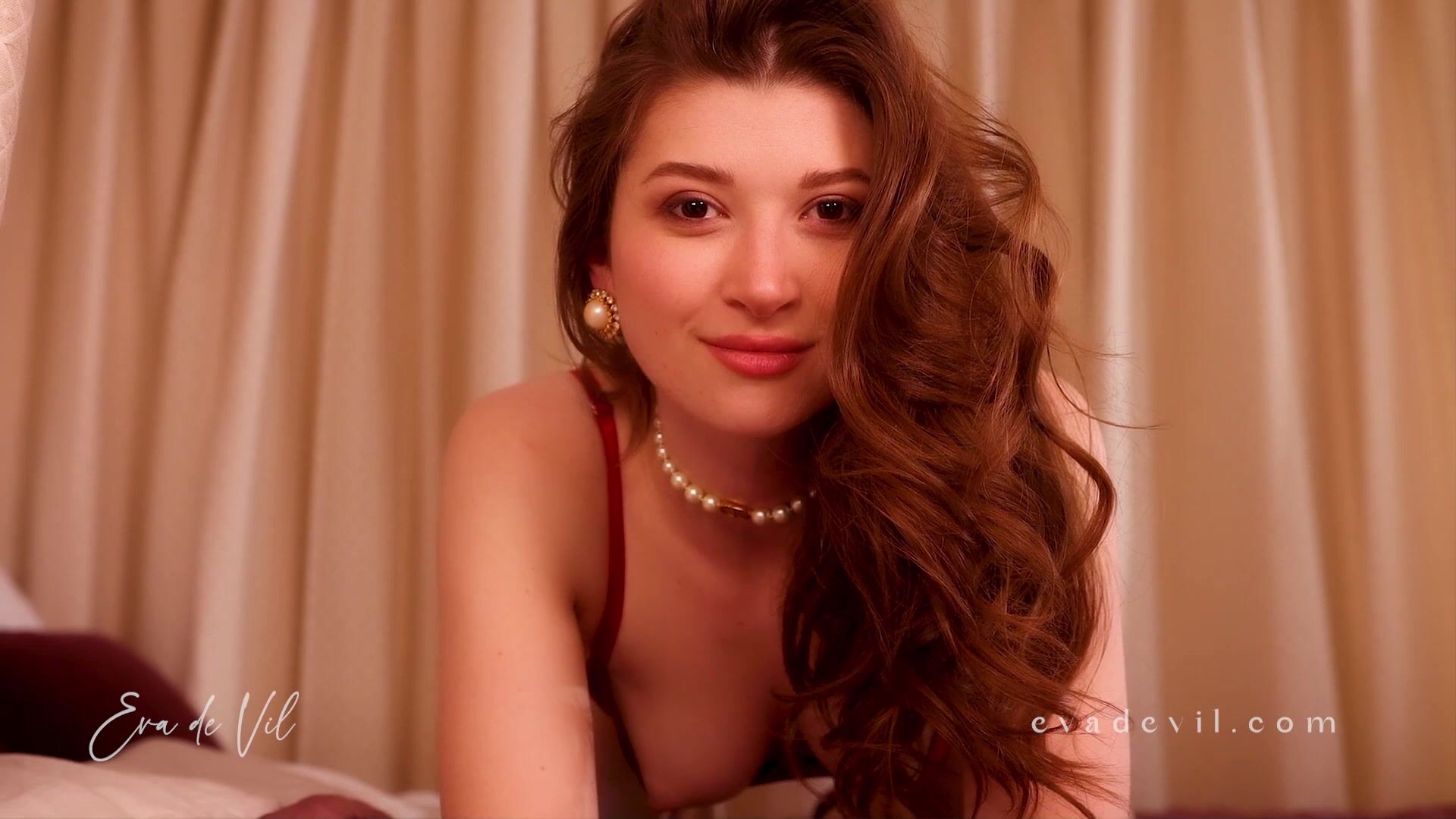 EvaDeVil teases in red lingerie showing off her juicy assets and big ass in this provocative video.