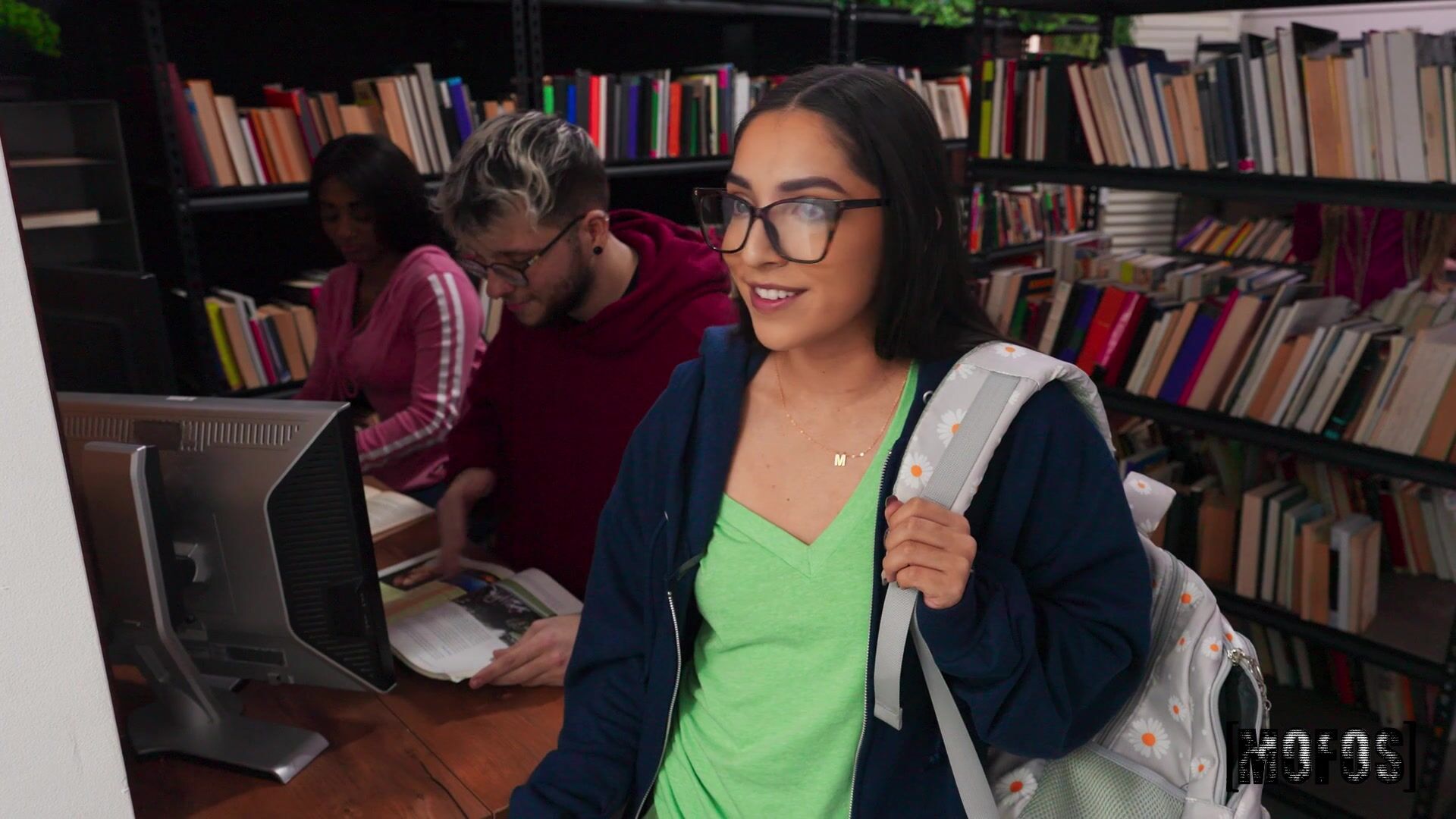 Petite Cutie Madison Wilde gets naughty in the library bouncing on cock and gagging on a hard dick.