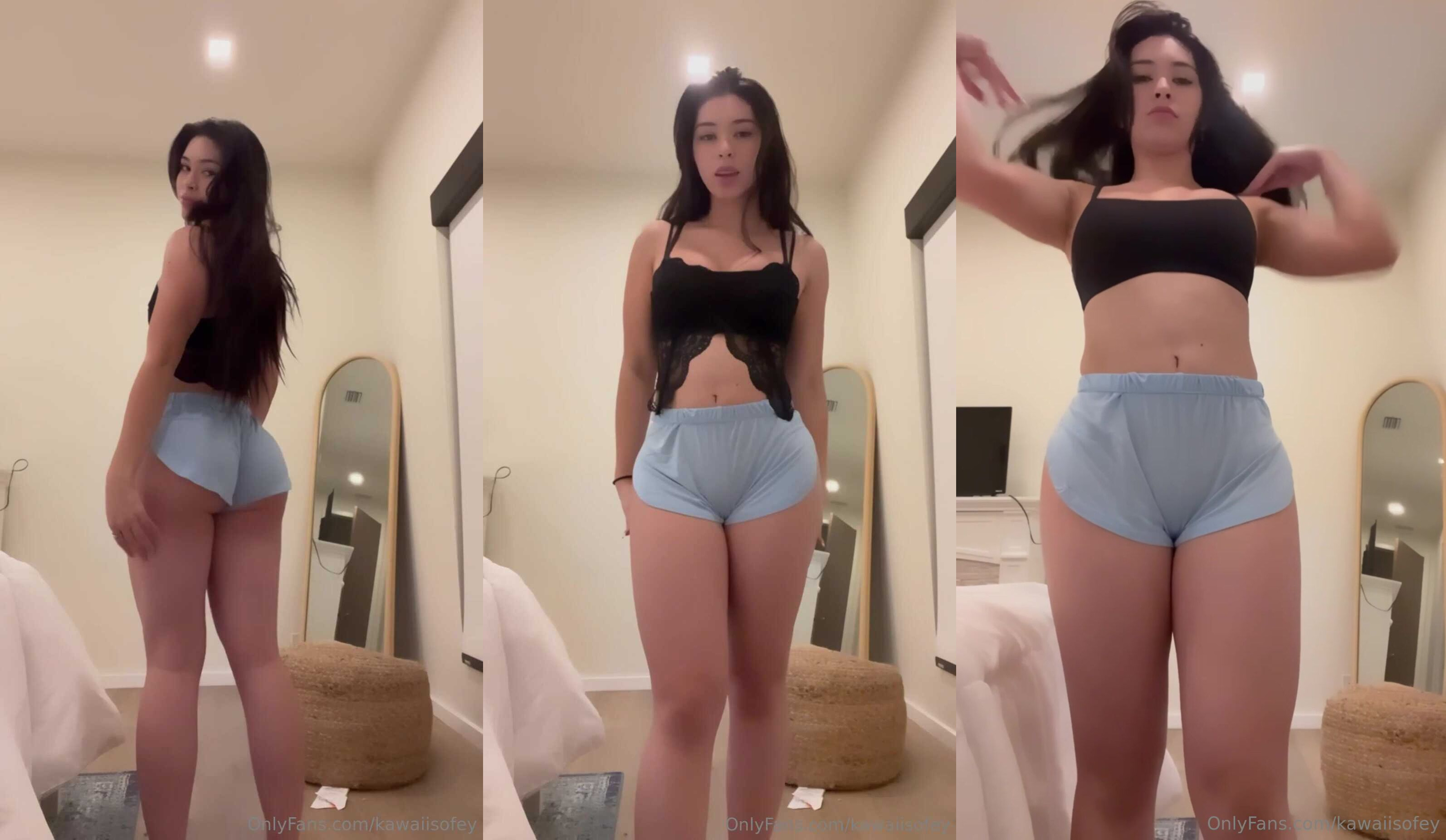 Kawaiisofey Shows Her Petite Body In Blue Shorts And A Black Top In This OnlyFans Video