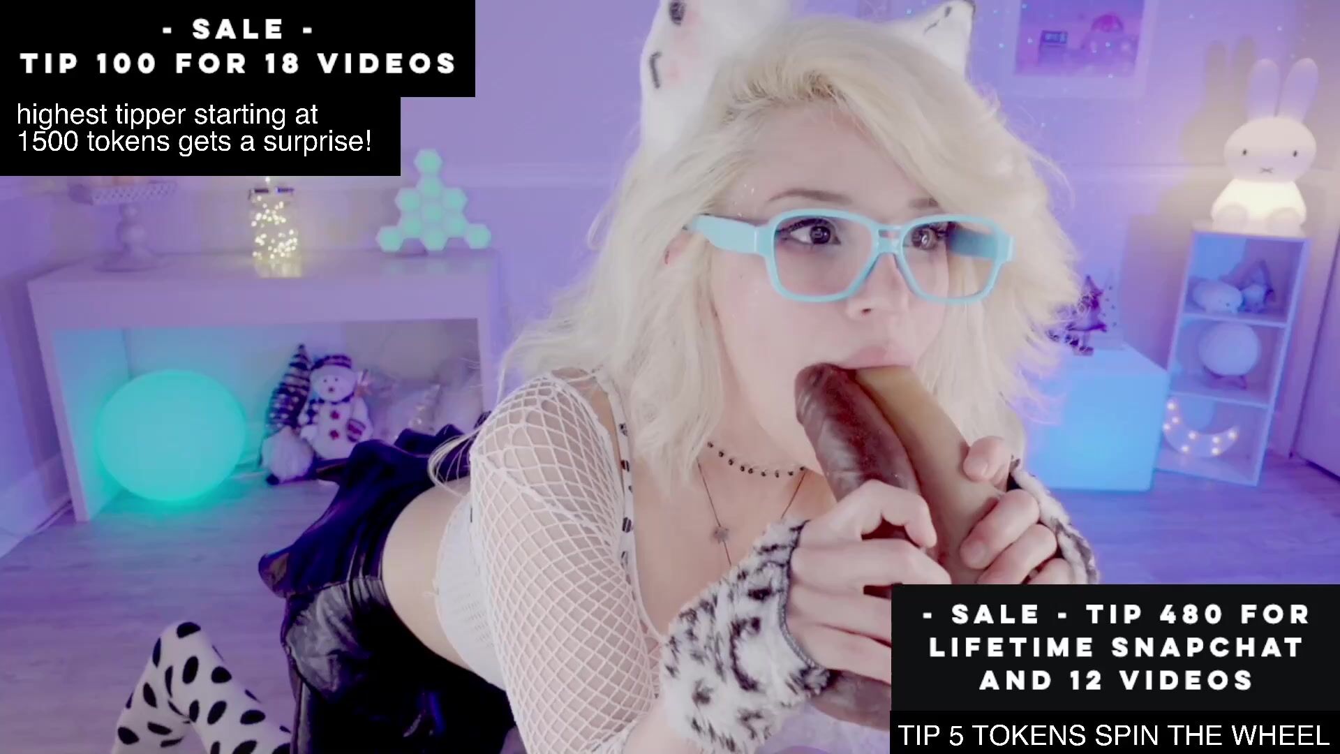 Description: Blonde bombshell CherryCrush rocks blue glasses and fishnet sleeves while giving a POV blowjob in this sizzling OnlyFans video.