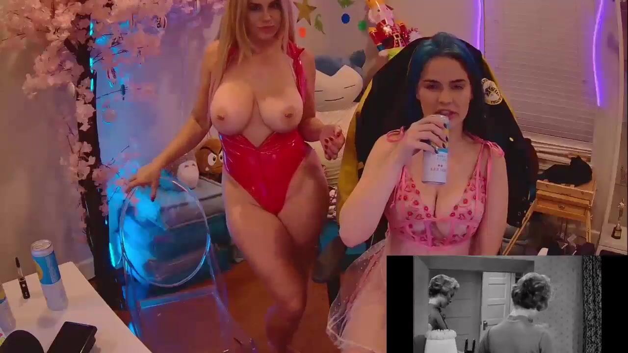 Sexy Chloe Lamb in Red Lingerie gets naughty while drinking in a live stream video.