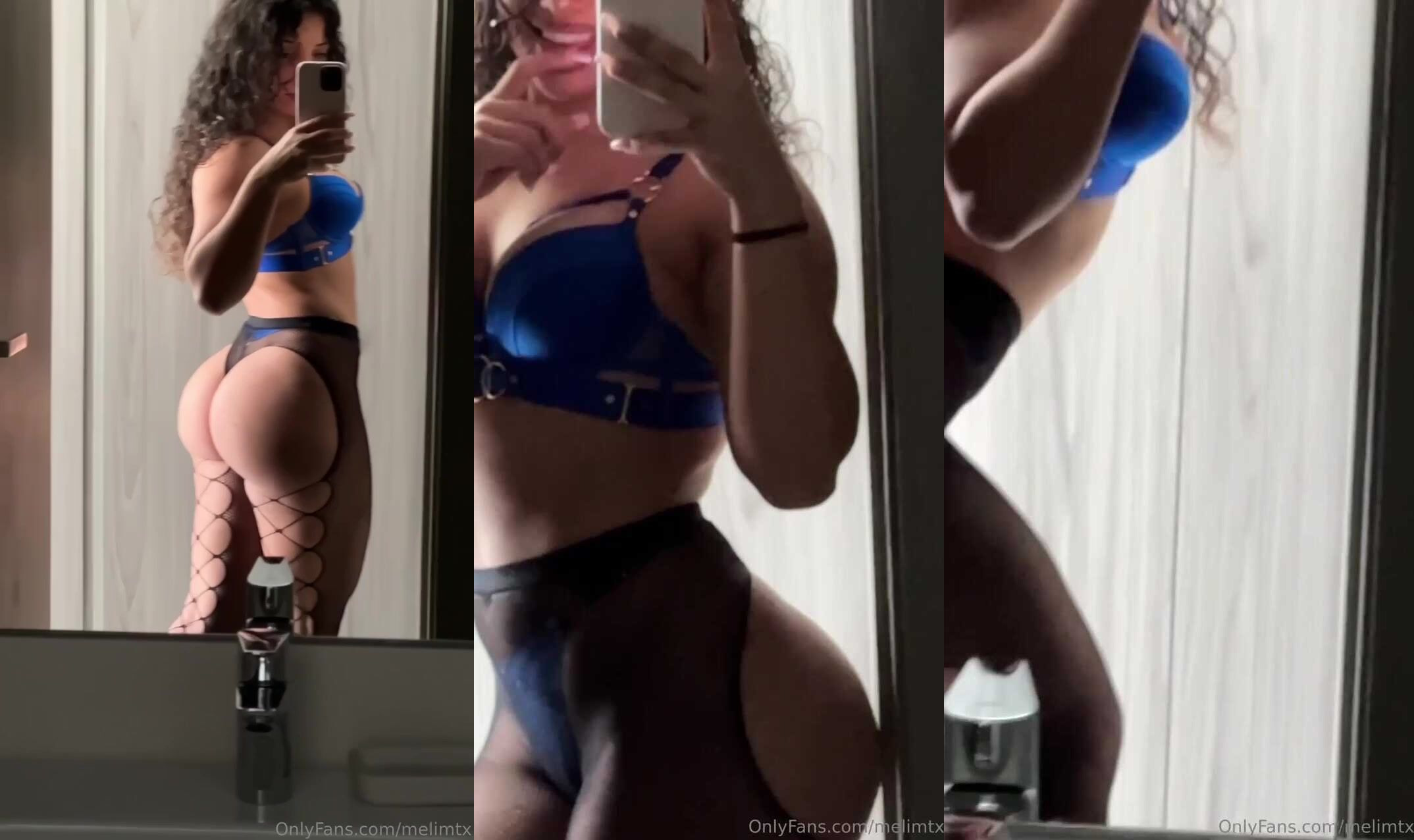 Curvy goddess Melimtx teases in blue lingerie showcasing her massive ass and thick thighs in this steamy OnlyFans video.