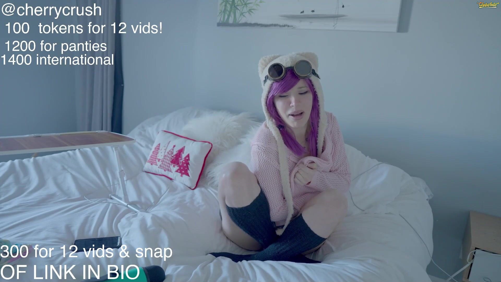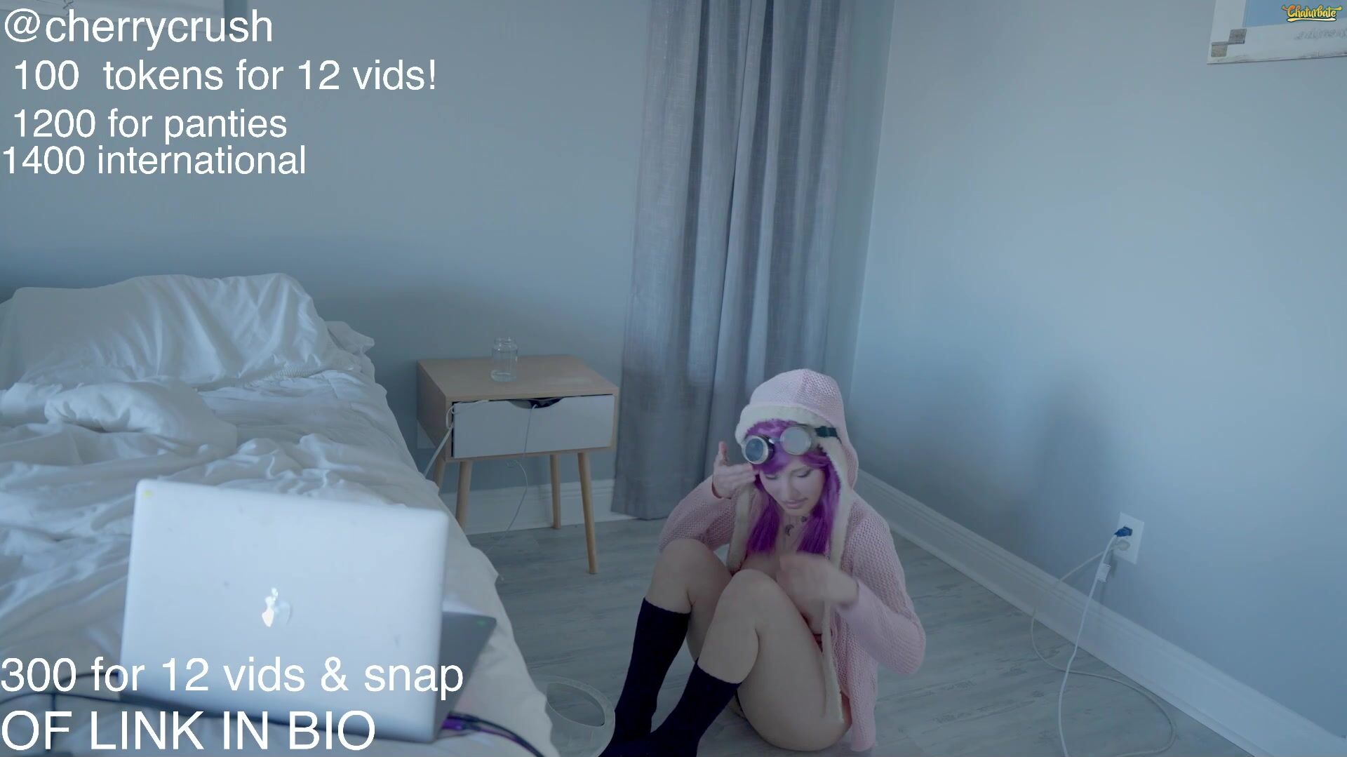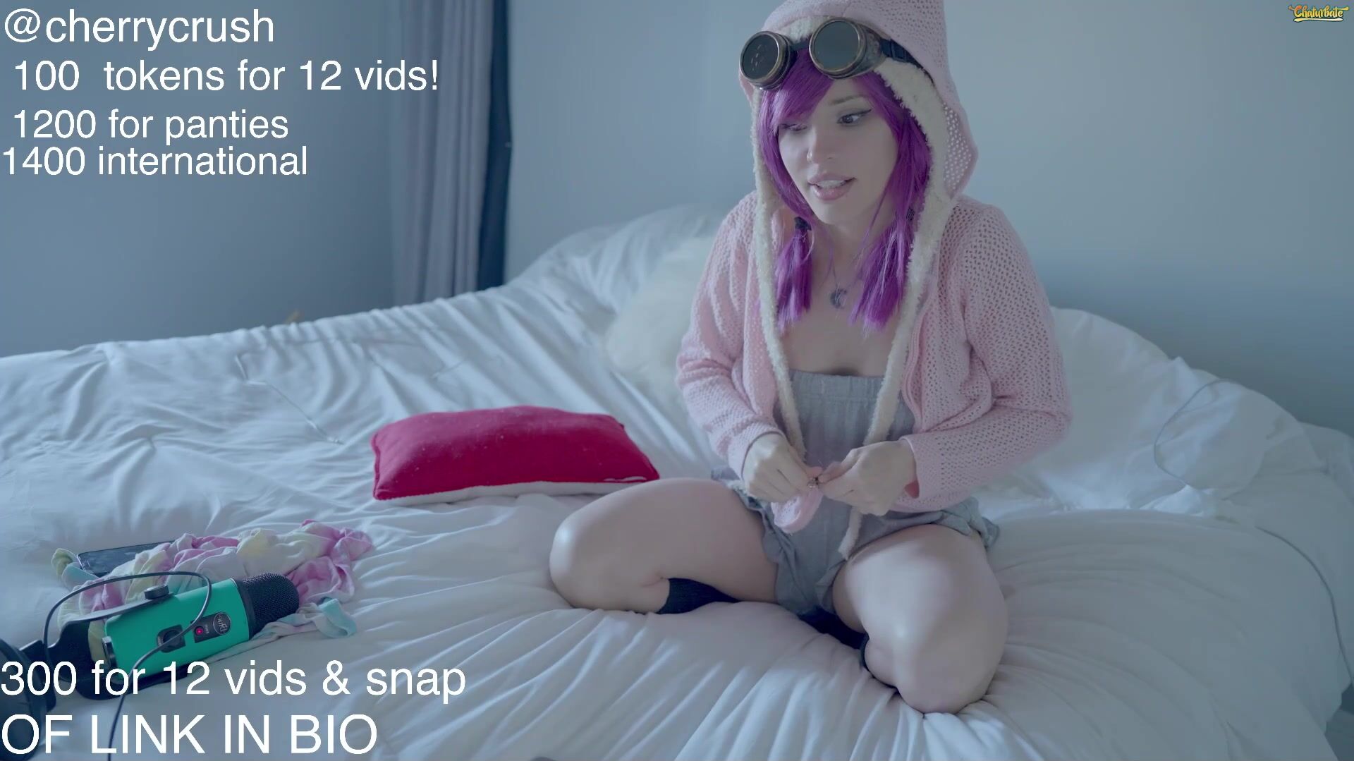 Exclusive live stream video featuring Cherrycrush in a playful pink wig cosplay tease.
