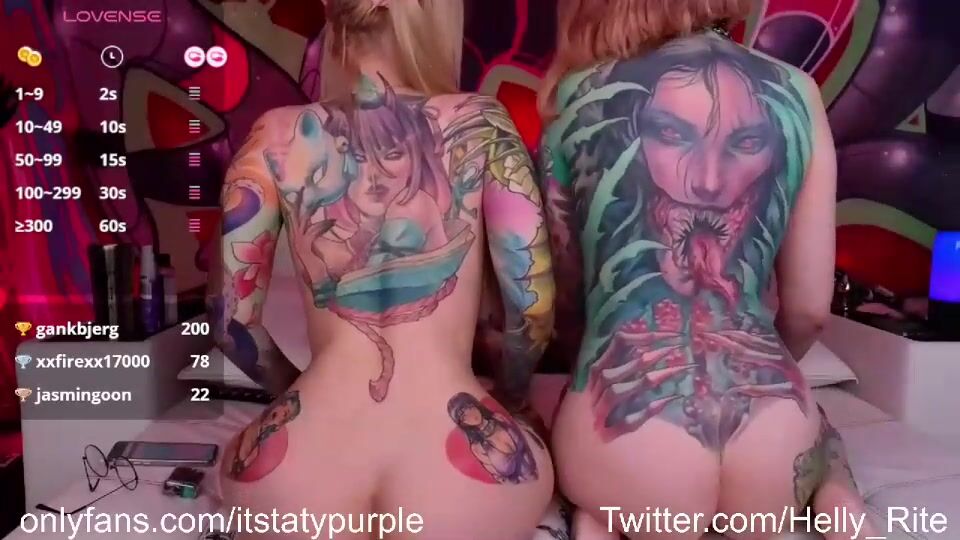 Description: Watch as Purple Bitch takes it to the next level in this steamy 52-minute live stream. Fingering and pussy play are front and center as this duo teases with their naked bodies and colorful tattoos. Don't miss this seductive show straight from OnlyFans!