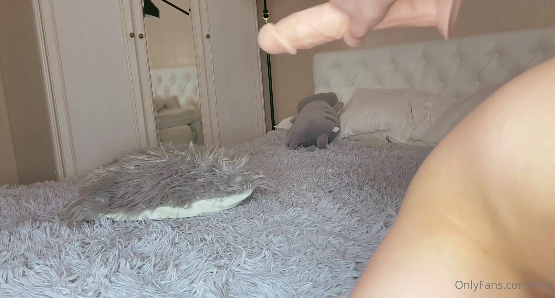 Petite Cutie Selti__Seltin teases her wet pussy with a dildo in this steamy solo masturbation video from her OnlyFans page.