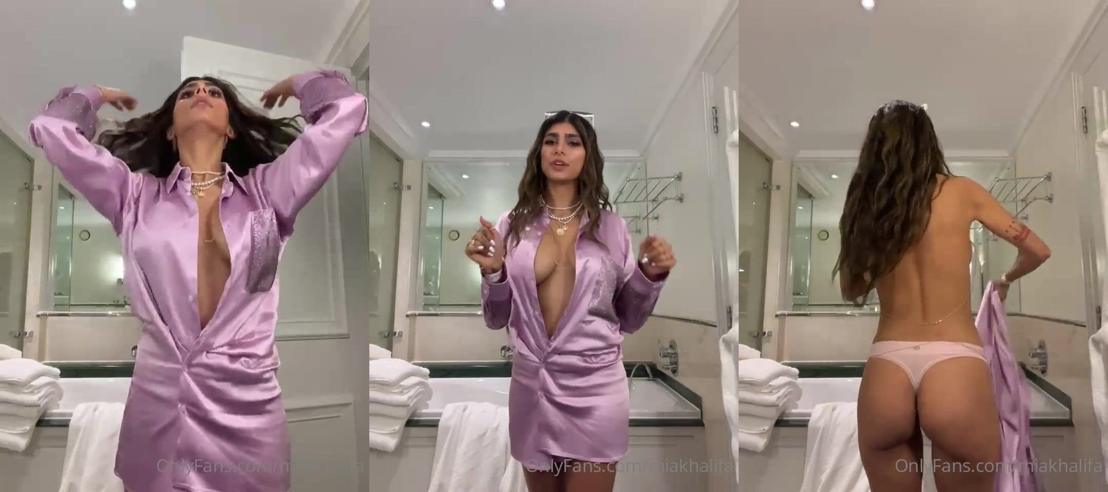 OnlyFans MiaKhalifa Strips Her Silky Purple Dress Teasing in Luxury Bathroom Video