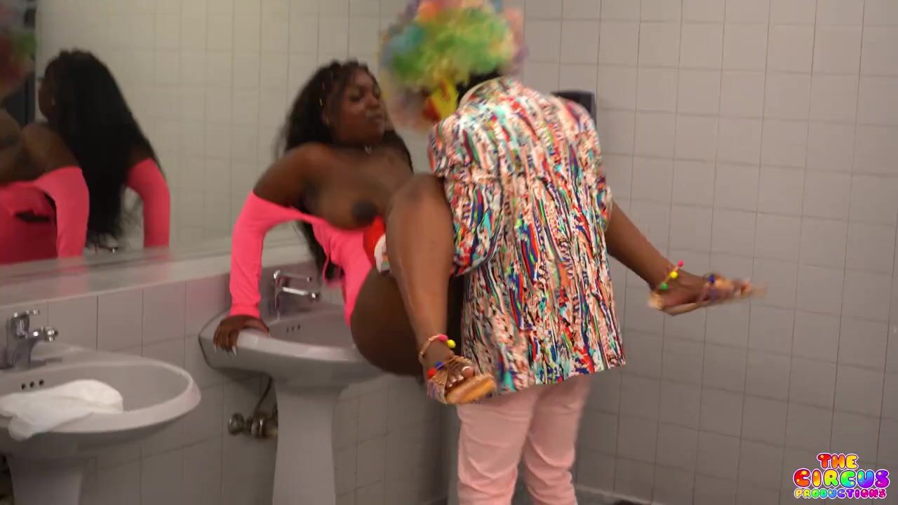 Ebony Petite Cutie and a clown get freaky in crazy Public places in this 17-minute video.