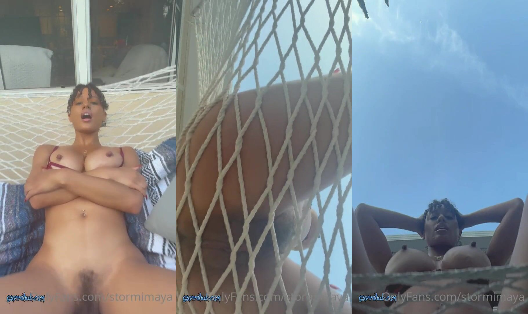Description: Ebony babe StormiMaya gets playful in the hammock baring her big tits and pussy in a teasing outdoor video from OnlyFans.