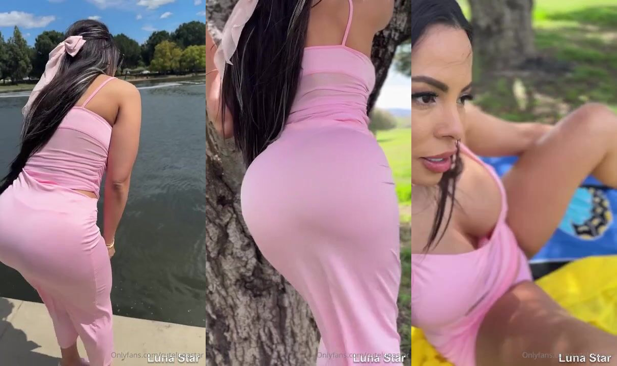 Luna Star risks it all in public park sex video where she teases with a glass dildo