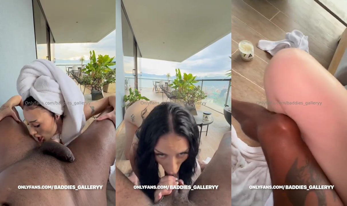 Auhneesh Nicole stars in this slippery oil fuck fest, getting her gorgeous body all slick and shiny before teasing her eager partner on the balcony for a wet and wild bang video
